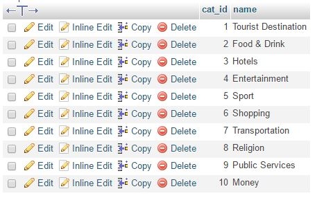 1. Open the_city database at phpmyadmin panel, and open table category 2. Default category list we give is 10 item :